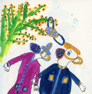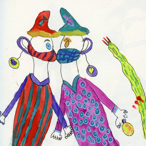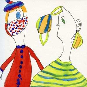 In het najaar van 2020 schilderde ik spontaan twee mensen met een mondkapje op. Daarna ontstond er een reeks, waar ik nog steeds aan werk en waarvan ik een boekje zal maken als we geen mondkapjes meer hoeven te dragen. Werken op papier.